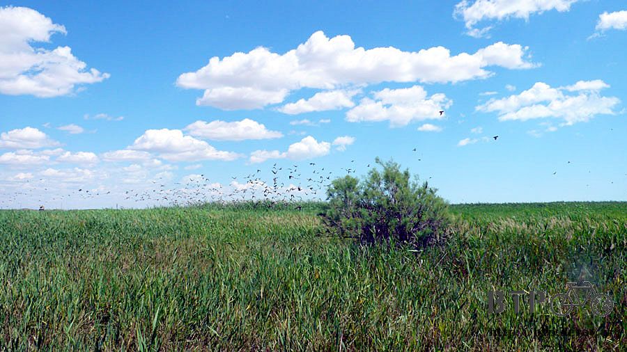 草原中的小樹停滿了數不清的小鳥,密密麻麻像要把樹給壓垮一樣,站在路邊撿起一顆石頭使勁的丟過去,絲毫沒有驚嚇到半隻。