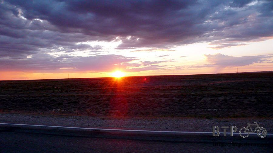 看著太陽下山,消失在地平線的時候開始計時,此時到完全天黑還有一個小時的時間能讓我騎車,要是趕不到落腳處的話就要摸黑騎車了。