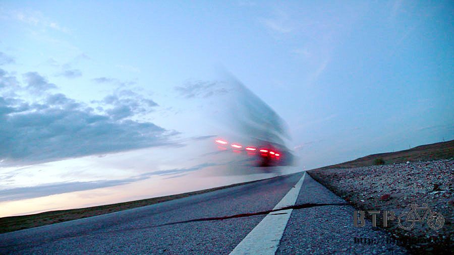 夜幕拉起的時候,換戴一般眼鏡、點亮小多車尾的紅色閃燈,提醒狂飆的哈薩克駕駛我的存在。