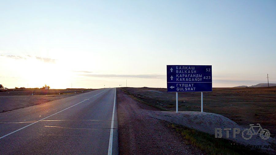 從睡覺的地方往靠湖的大城市,巴爾哈許,只剩下五十多公里路,一大清早還不到六點就出發,估計十點前就可以抵達。