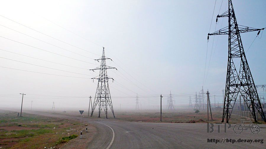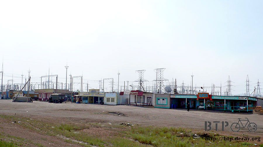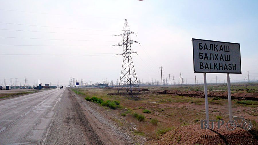 很順利的在十點左右就抵達巴爾哈許,一進入城市就是多的像墳場十字架一樣的鐵塔,無處不在的樹立著,迴響著高壓電的嗡嗡聲。