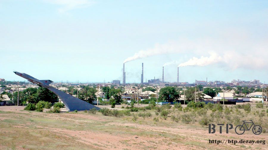 距離巴爾哈許還有五十幾公里的時候就可以看到幾座高高得大煙囪在冒著白煙,順著風勢往下飄。