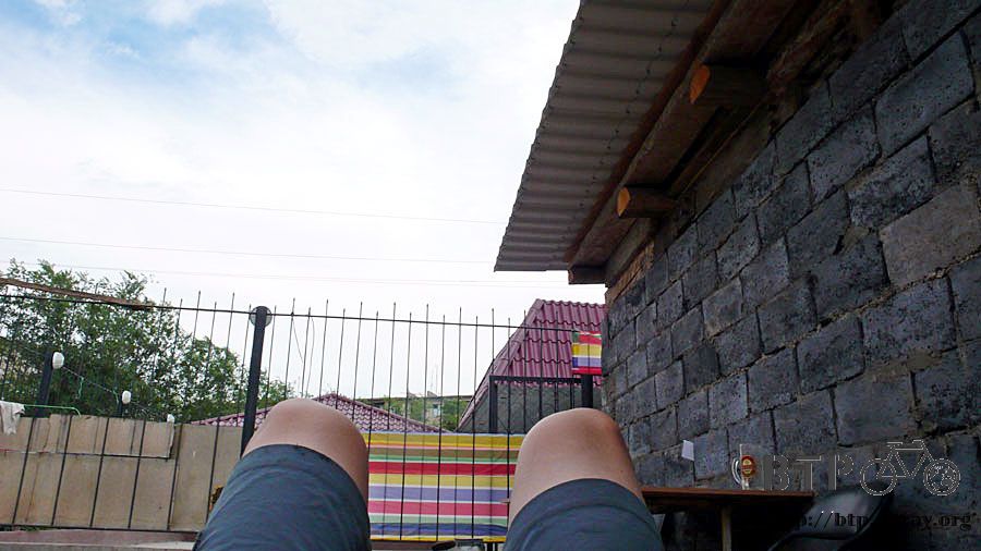 那個油漆成藍色的鐵桌椅則是我趴坐了一晚上睡覺的地方。早上用微濕的毛巾將臉隨便擦一擦,克難一點吧~反正快要到大城市了。
