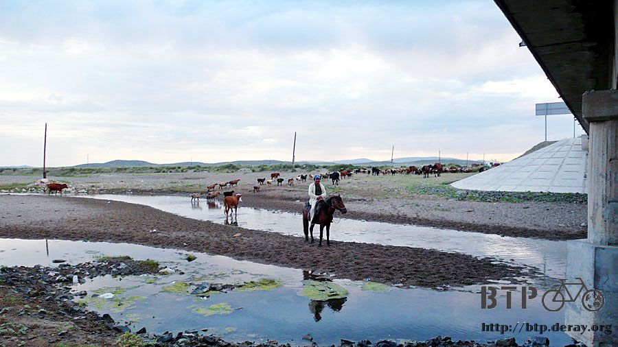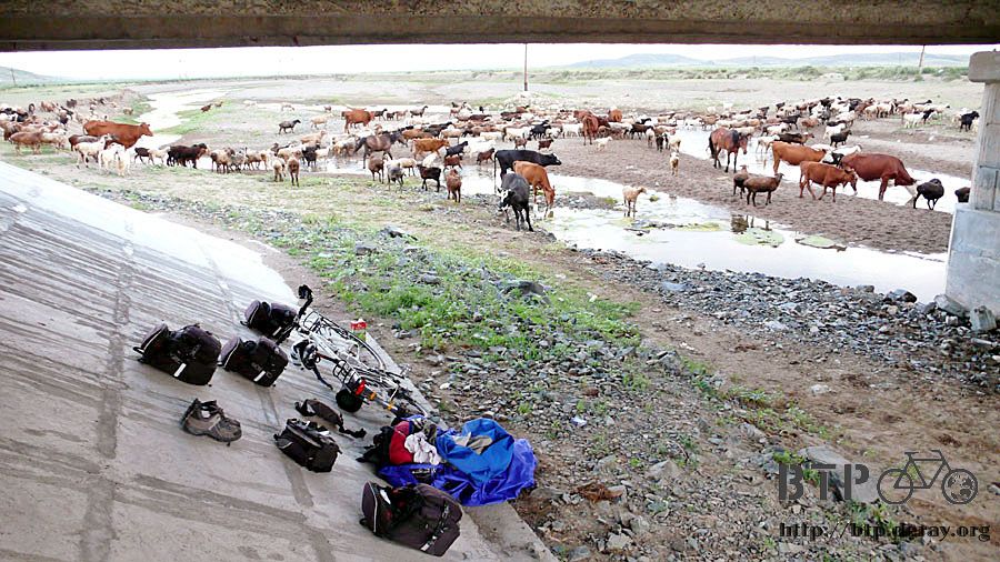 爬出帳棚將包包也都拿下來,放牧的隊伍正好從我身旁通過,好多的牛、羊、馬,應該有好幾百隻,橋下這些便便就是你們的貢獻。