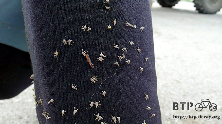 馬上就沾黏上一堆的種子,用拍的絕對拍不掉,要一顆一顆拔下來,不然這條褲子穿到巴黎,這些種子還是在上頭。