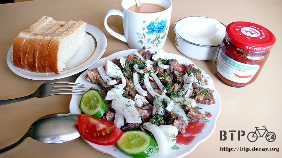 出發三個小時之後,看到了營業中的餐廳,終於可以享受一頓豐盛的早午餐,還有熱熱的奶茶沖淡一下嘴裡巧克力的味道。