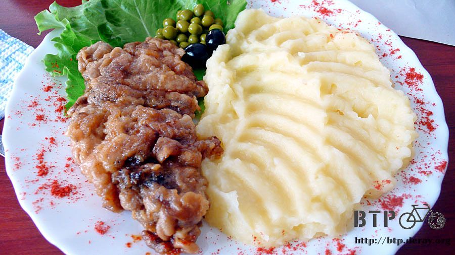 還有很香嫩的炸雞排、配上馬鈴薯泥、豌豆、橄欖。