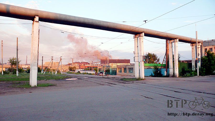 進城之後特地選了繞著工廠的路沿著騎,佔地遼闊的工廠,都是生鏽發黃的老舊機械、鐵架,一根比一根還粗的煙囪冒著五顏六色的廢氣。