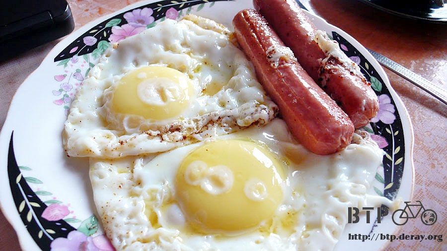 找了一間餐廳吃早午餐,煎兩顆蛋加兩根香腸,再來一杯奶茶配麵包,這樣吃就很完美了。