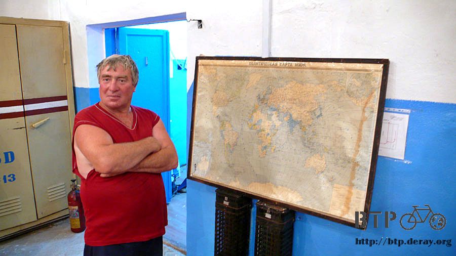 維格特拿出一大幅的哈薩克版本世界地圖,指著海南島的位置,說台灣在這邊?