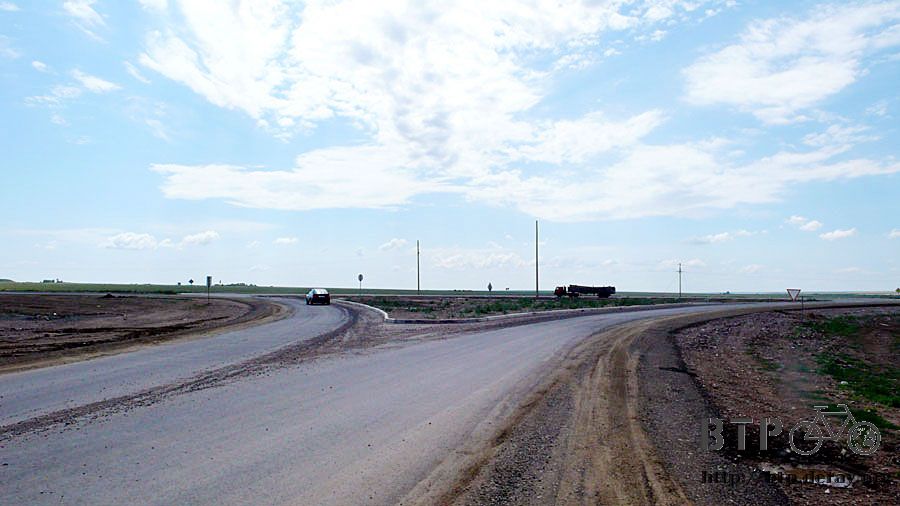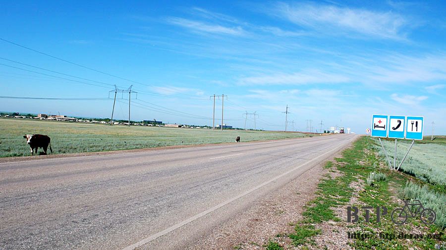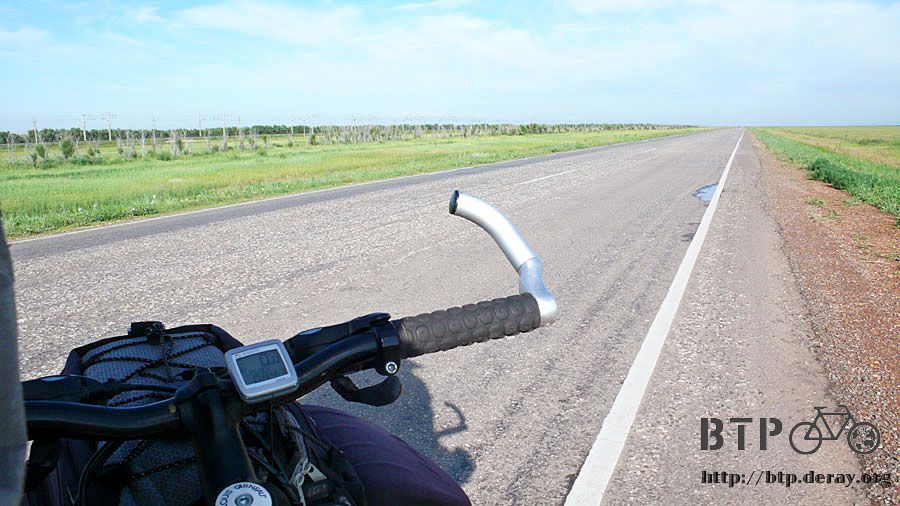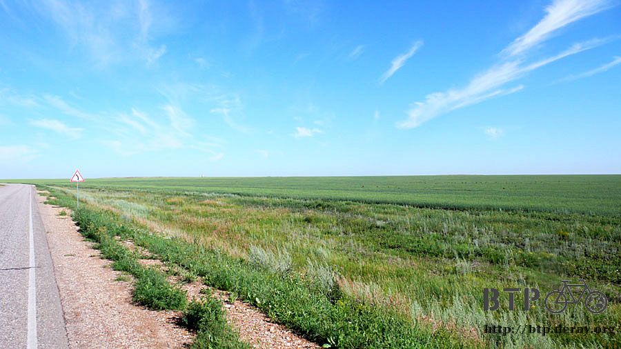 今天一口氣揮別了前幾天的爛路、逆風和下雨的鳥天氣,所有的劣勢都變成優勢,是在哈薩克旅行以來騎車最輕鬆的一天。