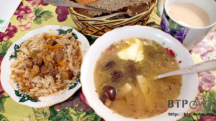雖然是雞同鴨講,但還是吃到了午餐,肉醬義大利麵、香菇馬鈴薯湯、麵包和奶茶。
