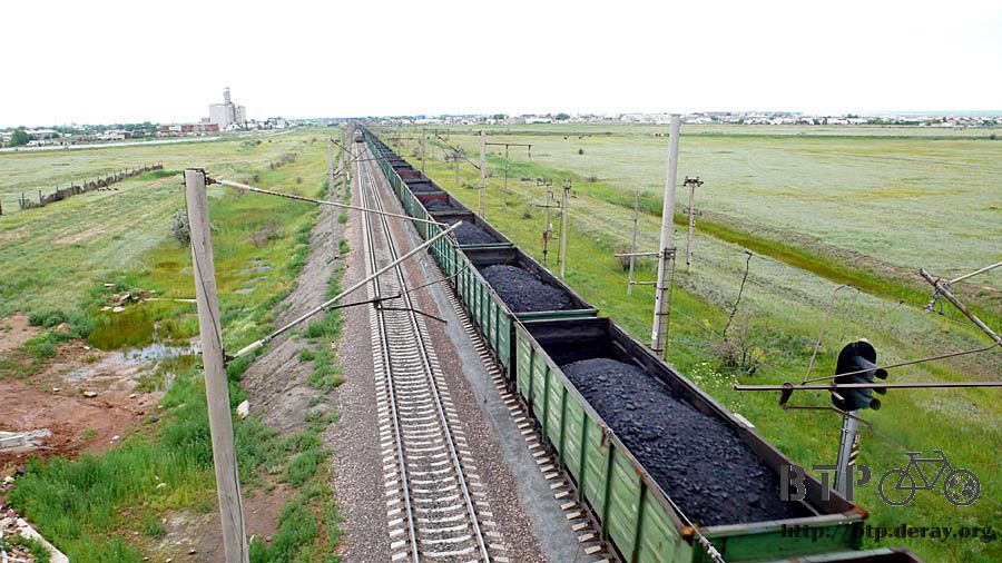 繼續往前騎,經過軌道的時候正好有火車經過,那些拖著六十幾節車廂的火車,裡頭都是煤礦。