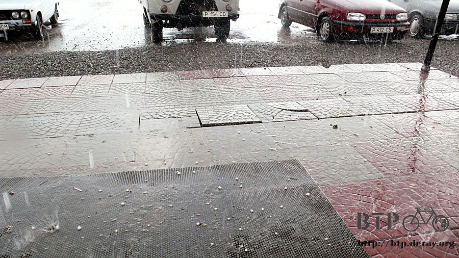 伴隨著雷雨而下的還有冰雹,冰糖般大小的冰雹乒乒乓乓落得滿地都是。