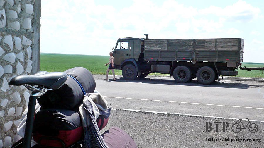這就是我之前說過,哈薩克很多司機都是熱到只穿一件內褲在開車,也直接穿著一條內褲就進商店買東西或是加油。