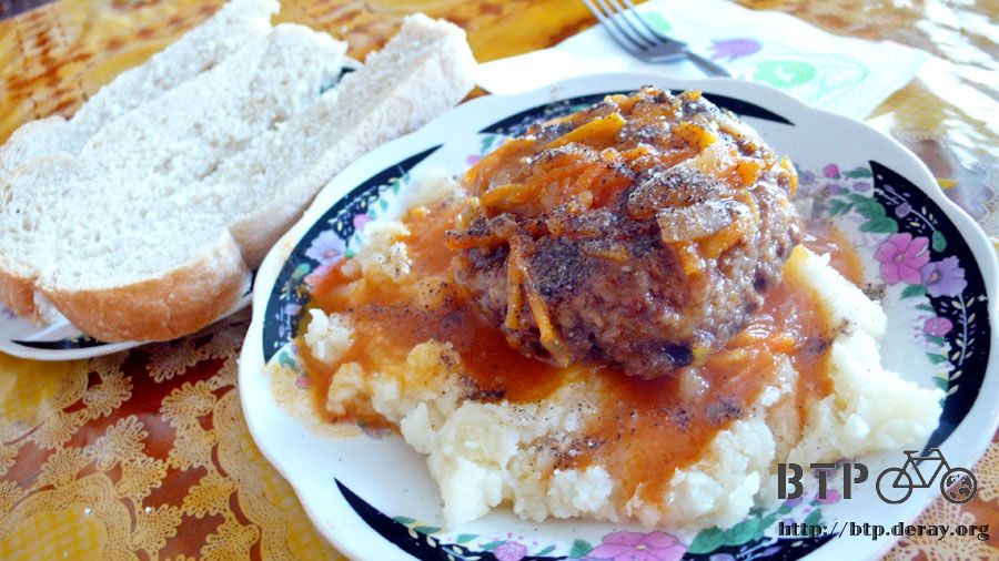 晚餐吃漢堡肉配馬鈴薯泥,簡單又好吃,而且很便宜,雖然沒點奶茶但依然附贈麵包。