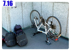 襪子好不容易風乾之後,躲在公車等候站穿襪子,正好有卡車司機停下來修車給我拍到照片。
