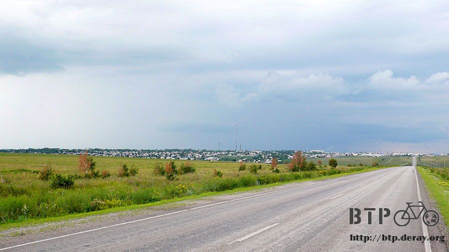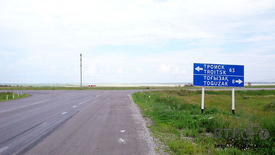 接近國境的時候就能看到遠方有大城市,這一路的告示牌所指的就是它,特羅依恣克,而它卻是俄羅斯的城市,並不是哈薩克的。