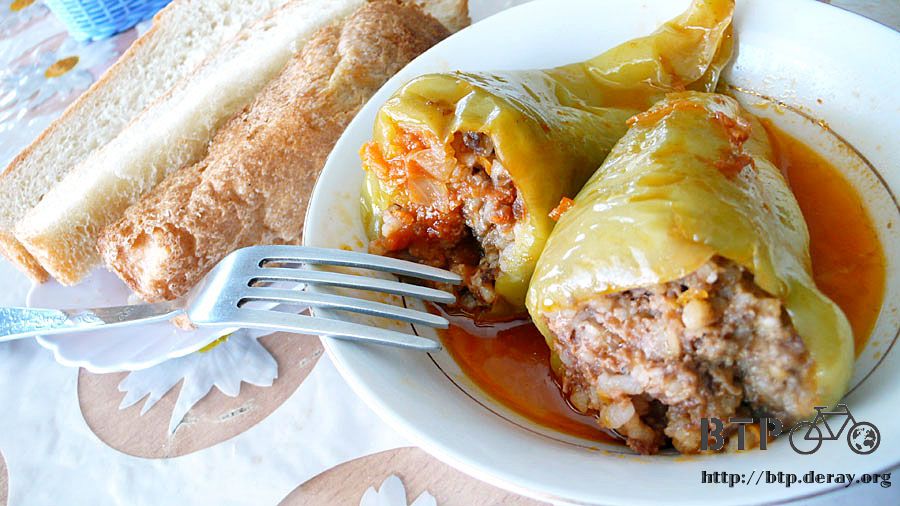 這間餐廳東西很少,想吃湯麵都沒有,只有青椒鑲肉,配上麵包、奶茶,但味道還不錯,肉餡混著米飯,口感香嫩。