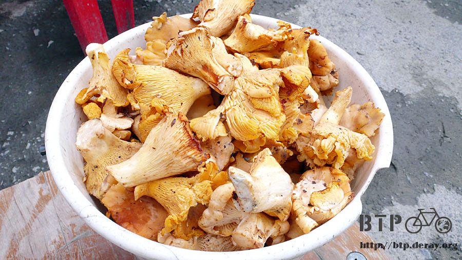 沿著這些樹木的路旁則是很多的小販,擺著幾個塑膠桶,裡頭都是摘採來的菇類。