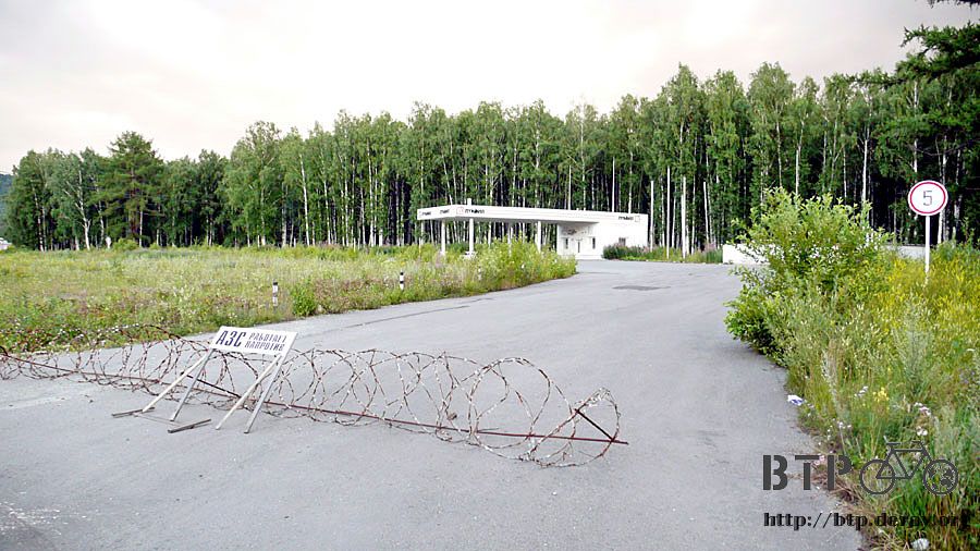再次進入山路,幾百公尺之後又下起小雨,同時也出現加油站的牌子,靠過去一看發現是廢棄的加油站。