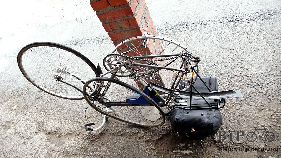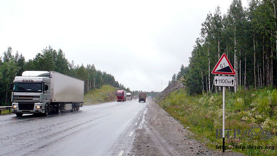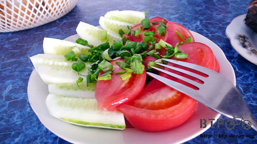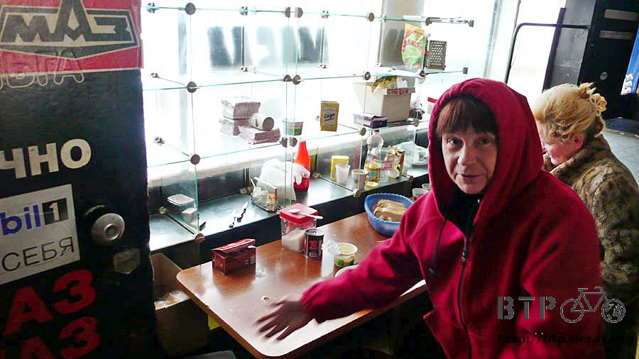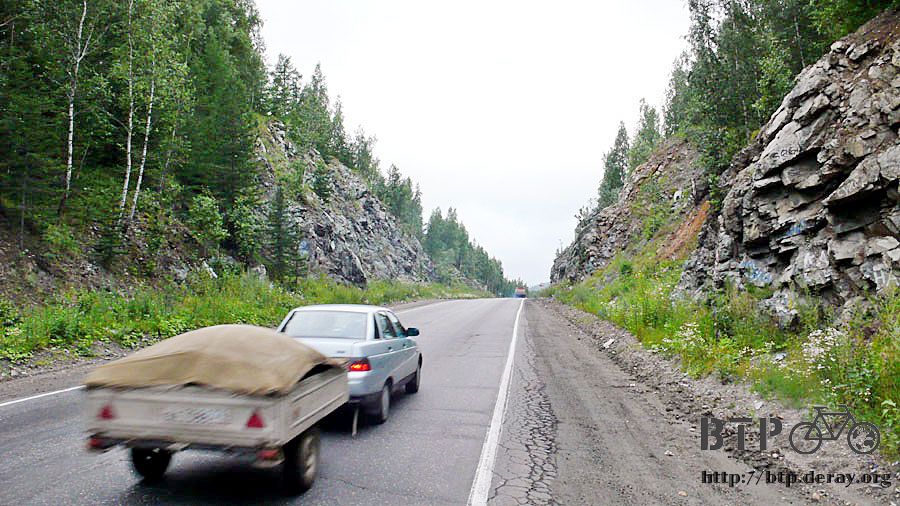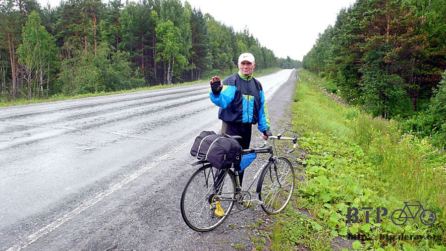 半小時後,我正在路邊喘氣休息,從後方追上一輛自行車,在俄羅斯遇到的第一個單車旅行者,是俄國人,彼德洛夫,五十四歲。