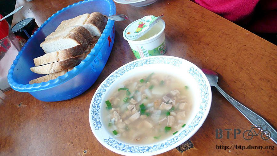 店裡的婆婆招呼我坐在桌子上跟大家一起喝熱湯,湯裡的料挺豐富的,其中一大部分就是昨天看到的菇類,配上馬鈴薯跟米飯。