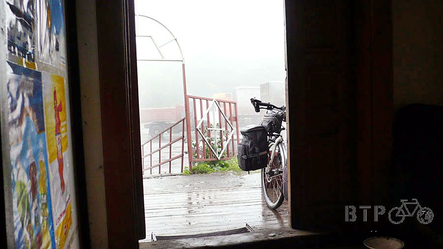 所以我就在溫暖的睡袋中又睡了一個小時,再度睜開眼的時候,則下起了毛毛雨,這一刻我真的想在加油站底下睡一整天,今天不要騎車算了。
