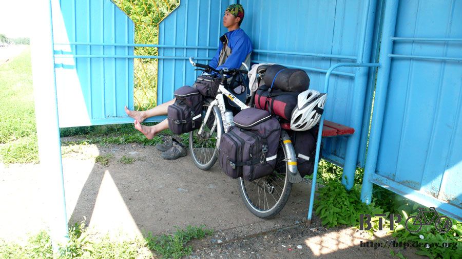 出發三個小時之後是休息時間,找了一個陰涼的公車站休息一小時。