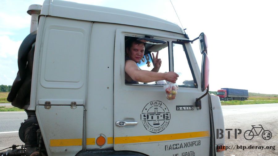 拿著一袋蘋果到店裡用水洗乾淨,出來的時候卡車司機還沒開走,又停在原地吆喝著叫我過去。