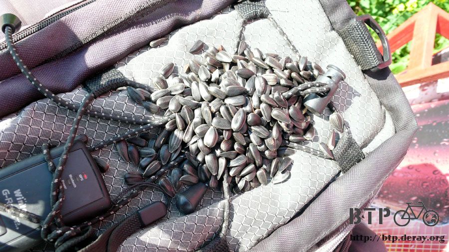 邊騎車邊嗑瓜子是蠻奇怪的事情,怎麼想都不太搭調,實際進行的時候真的要注意安全,單手騎負載這麼多行李的車子很不穩。