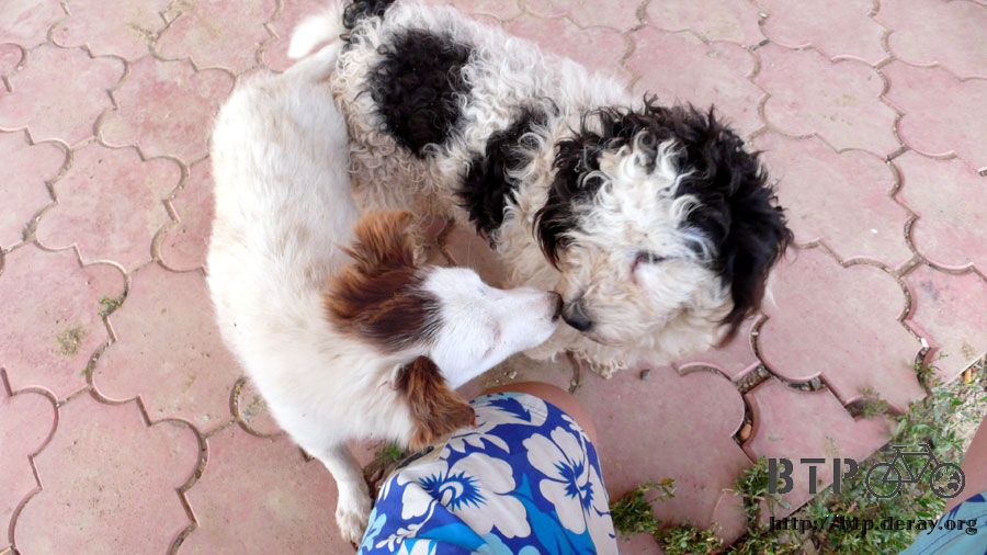 這邊養了幾隻很好笑的狗,看到我靠近就吠了兩聲,然後回頭看其它狗有沒有跟上來助陣,有才敢繼續吠,不然夾著尾巴就跑掉了。