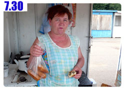 早餐燉肉配馬鈴薯泥、麵包、熱奶茶68元、外帶五個口味的麵包、大瓶冰紅茶83元、商店圈圈餅乾、果汁58元、點心香草汽水、馬鈴薯麵包35元、旅館220元、晚餐番茄、黃瓜、洋蔥沙拉、炸薯條配炸排骨、蔬菜湯麵、麵包、咖啡牛奶145元 |