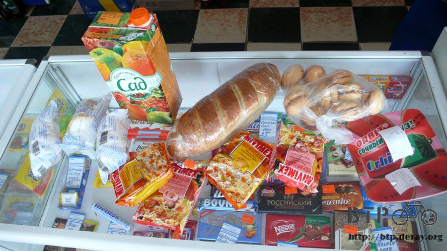 在這間商店進行了大採購,一共買了四個冰淇淋、四包泡麵、兩公升裝的綜合果汁、一大條麵包和一袋夾心餅乾。