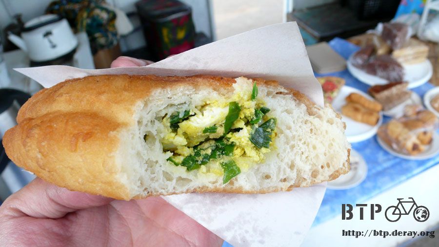 這些糕點都是這個媽媽自己做的,很厲害,看我吃得讚不絕口,媽媽又拿了另一個麵包給我吃,比較高級一點,包的是胡椒洋蔥肉餡。