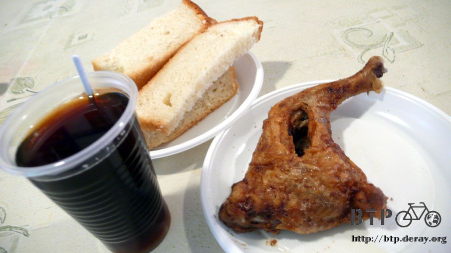 規模很小,坐在裡面吃飯就能看到外面的小多,桌上擺著前個客人吃完還沒有收的餐盤,我指著雞骨頭說也給我來一支這個。