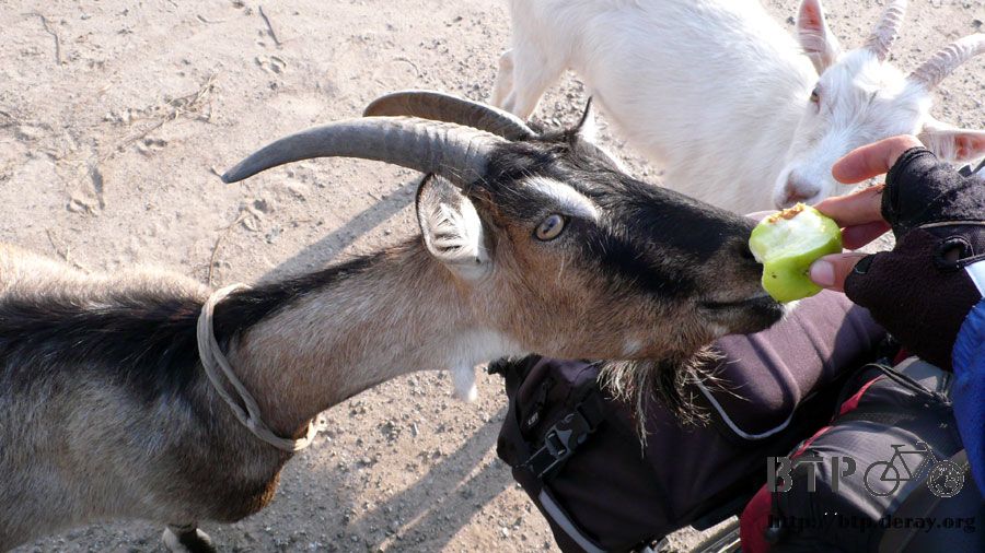 有山羊陪著吃早餐還不錯,停在路邊吃蘋果,吃剩的就分給山羊吃,老伯伯五顆好心的蘋果餵飽了一個人和兩隻山羊唷~