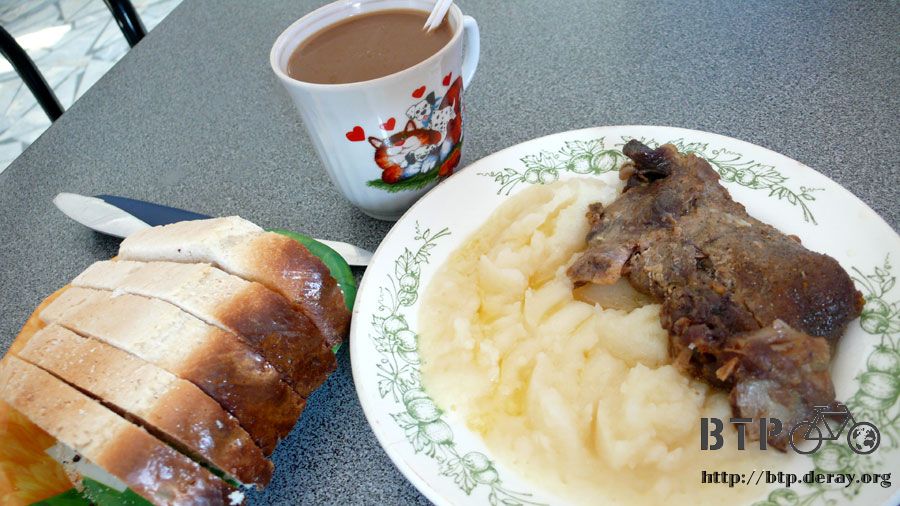 好不容易出現的小鎮商店鳳梨汁、烤餅乾46.5元、午餐烤肉配馬鈴薯泥、麵包、奶茶118元、果汁水14元、冰淇淋兩個11元、葡萄汁40元、旅館350元、晚餐小黃瓜番茄沙拉、烤肉、麵包、咖啡155元 |