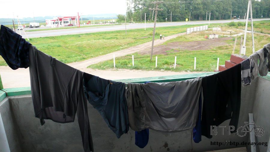 這些髒兮兮的衣服經過洗滌之後已經乾淨很多,拿出童軍繩晾在旅館陽台,這樣比晾在房間裡還乾得快些。