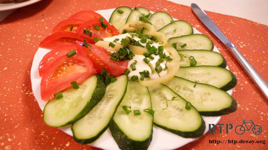 晚餐直接到樓下餐廳報到,點了沙拉、烤牛肉、烤肉捲,餐廳的老闆和幾個朋友也在吃飯,