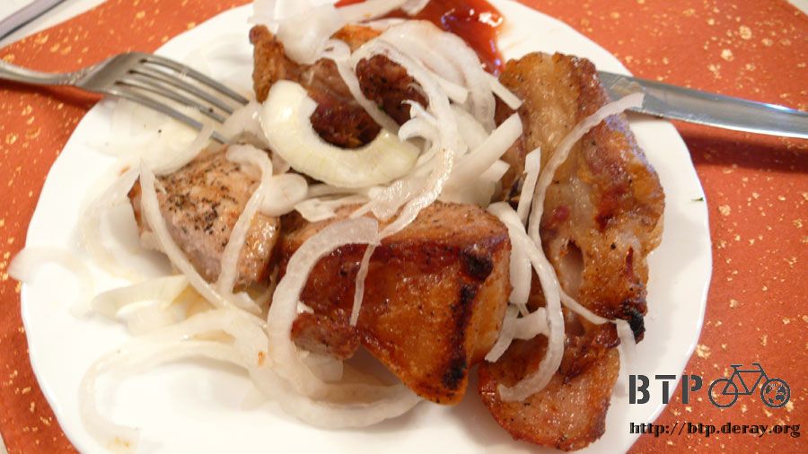 騎了好一段山路之後終於接回大馬路,出現大馬路之後也很快地就出現了城鎮,餐廳的招牌看了真令人陶醉。