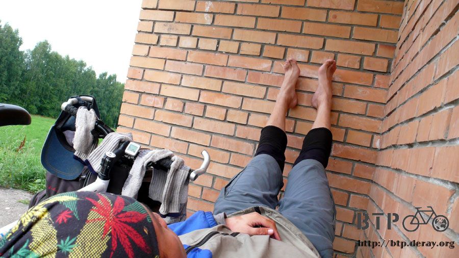脫掉鞋襪、也卸下小多的重擔,拿睡袋當做枕頭,躺在半露天的椅子上大睡一覺。