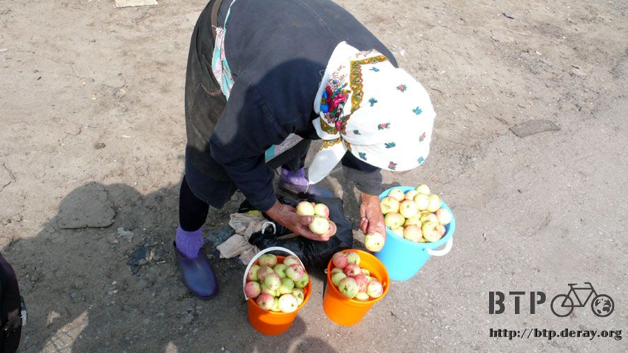 幾乎都是在賣蘋果,其它還有馬鈴薯、洋蔥、小黃瓜這些,大多都是農婦騎著自行車從鎮上拿到路邊販售。