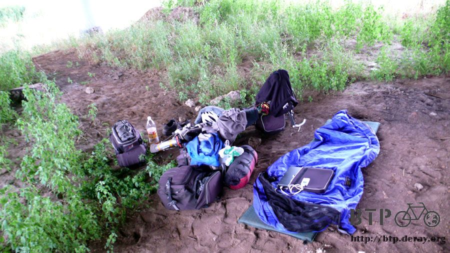 上次睡在橋下的時候比較辛苦,能夠躺平的地方都是大石頭和牛大便,這次就比較適合露營,橋下的面積很廣大,東西想怎麼擺都行。