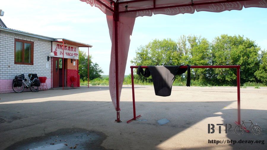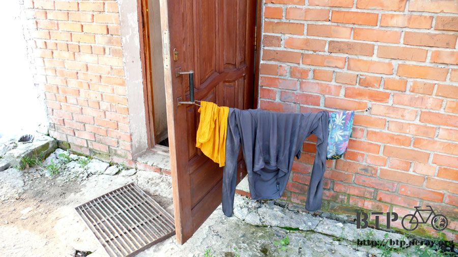 洗完的上衣掛在欄杆上,被大風吹得不停搖晃,半小時後乾得差不多時,穿上微濕的上衣騎車相當涼快。
