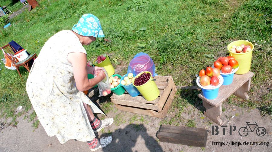 路旁販賣蔬果的攤販瞬間多了起來,因為旁邊就是農家,家家戶戶庭院裡都種著結實纍纍的蘋果樹,在自家門口擺上椅子跟裝滿蘋果的水桶就可以做生意了。