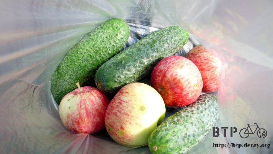 真是好心的婆婆,挑給我的也都是外觀沒有爛掉的好蘋果,小黃瓜看起來也很好吃的樣子。