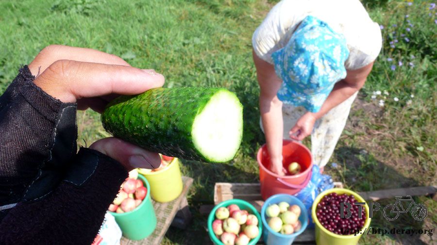 然後拿著塑膠袋裝了三根小黃瓜和四顆蘋果給我,正打算要付錢的時候老婆婆說這是送給我的,不用錢,要是吃不夠的話還可以再拿。
