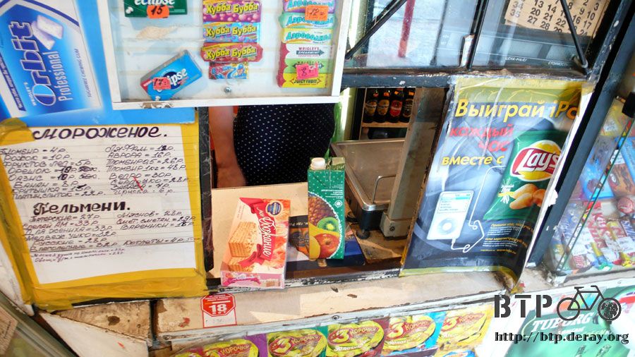 看見商店的時候再度去補給一點食物,這次買東西就簡單多了,跟以前一樣,手指一比、掏出盧布就搞定,買一大盒綜合果汁止渴。