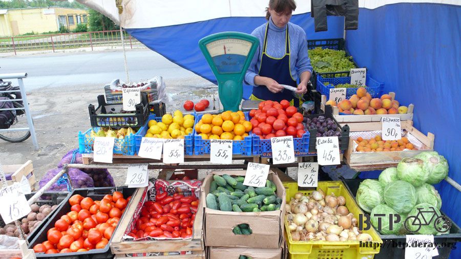 老是喝果汁也不夠天然,拿了三個漂亮的番茄吃點新鮮的水果,秤過重之後只要十七盧布。